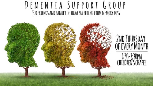We host /facilitate a monthly dementia support group that meets every 2nd Thursday of the month in our Children's Chapel. This is for friends and family of those who are struggling with dementia. We can all use the support!