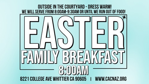 Join us for breakfast and fellowship in our courtyard will begin at 8:00am!